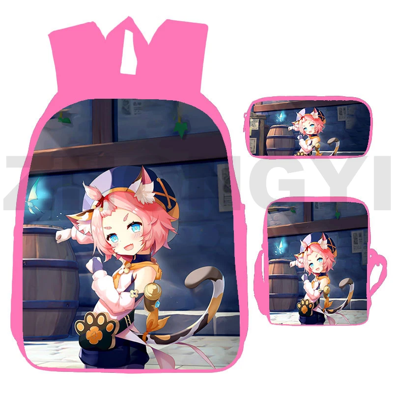 Хит продаж 2023, ударные рюкзаки для девочек-подростков с 3d-играми Genshin, 3 шт./комплект, розовые милые детские Мультяшные сумки для книг, японские кавайные сумки