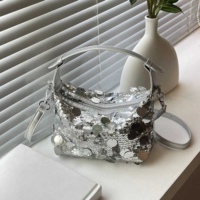 Evening Clutch Bag Sparkling PU Purse Sequined Shoulder Tote Lightweight Zipper Party & Daily Shoulder Bag