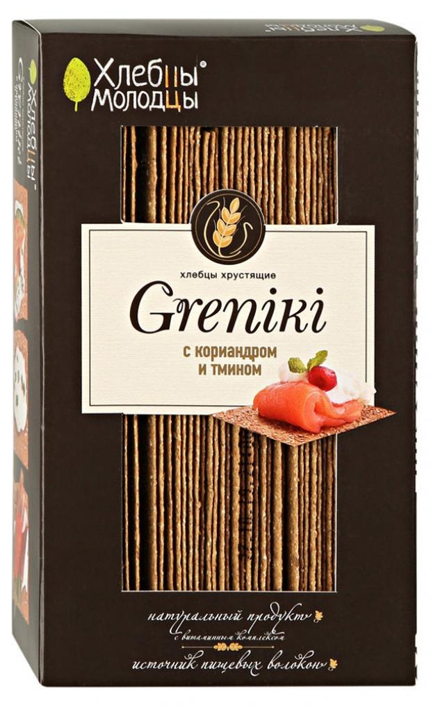 Хлебцы хрустящие Хлебцы-молодцы Greniki с кориандром и тмином 150г.