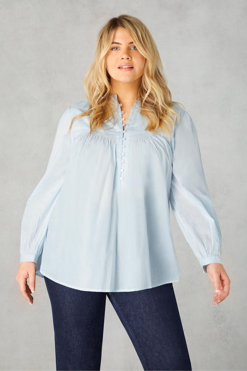 Хлопковая блузка синего кроя свободного кроя с пуговицами спереди Live Unlimited, синий