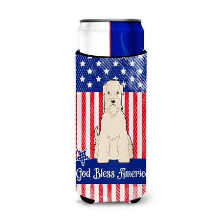 Carolines Treasures BB3056MUK Patriotic USA Soft Coated Wheaten Terrier Michelob Ultra Hugger for slim cans Slim Can