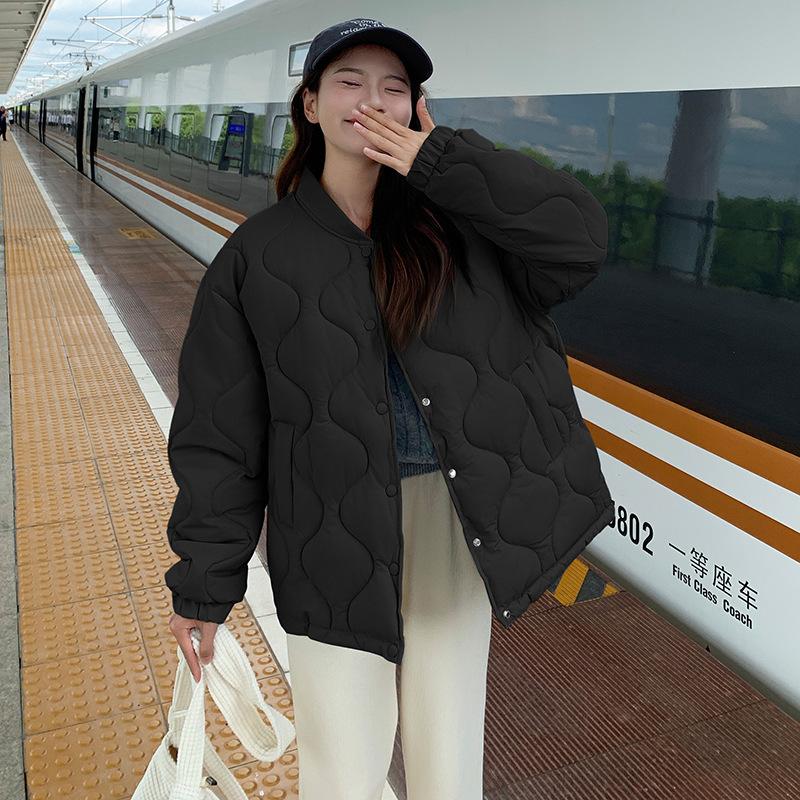 Хлопковая одежда Женская Осень и Зима 2025 Новая Стеганая Куртка Зимняя Стеганая Куртка Корейская Свободная Ромбовидная Клетка Пуховик из Хлопка S чёрный