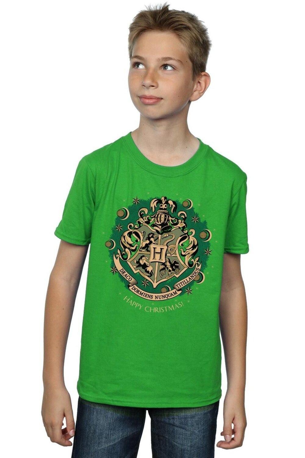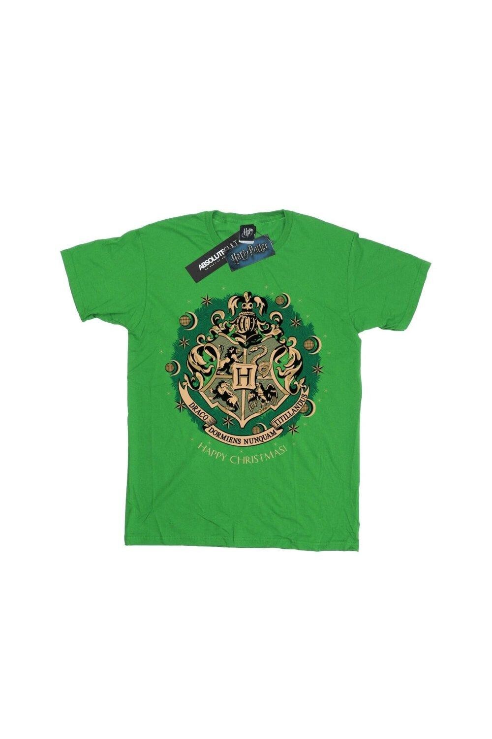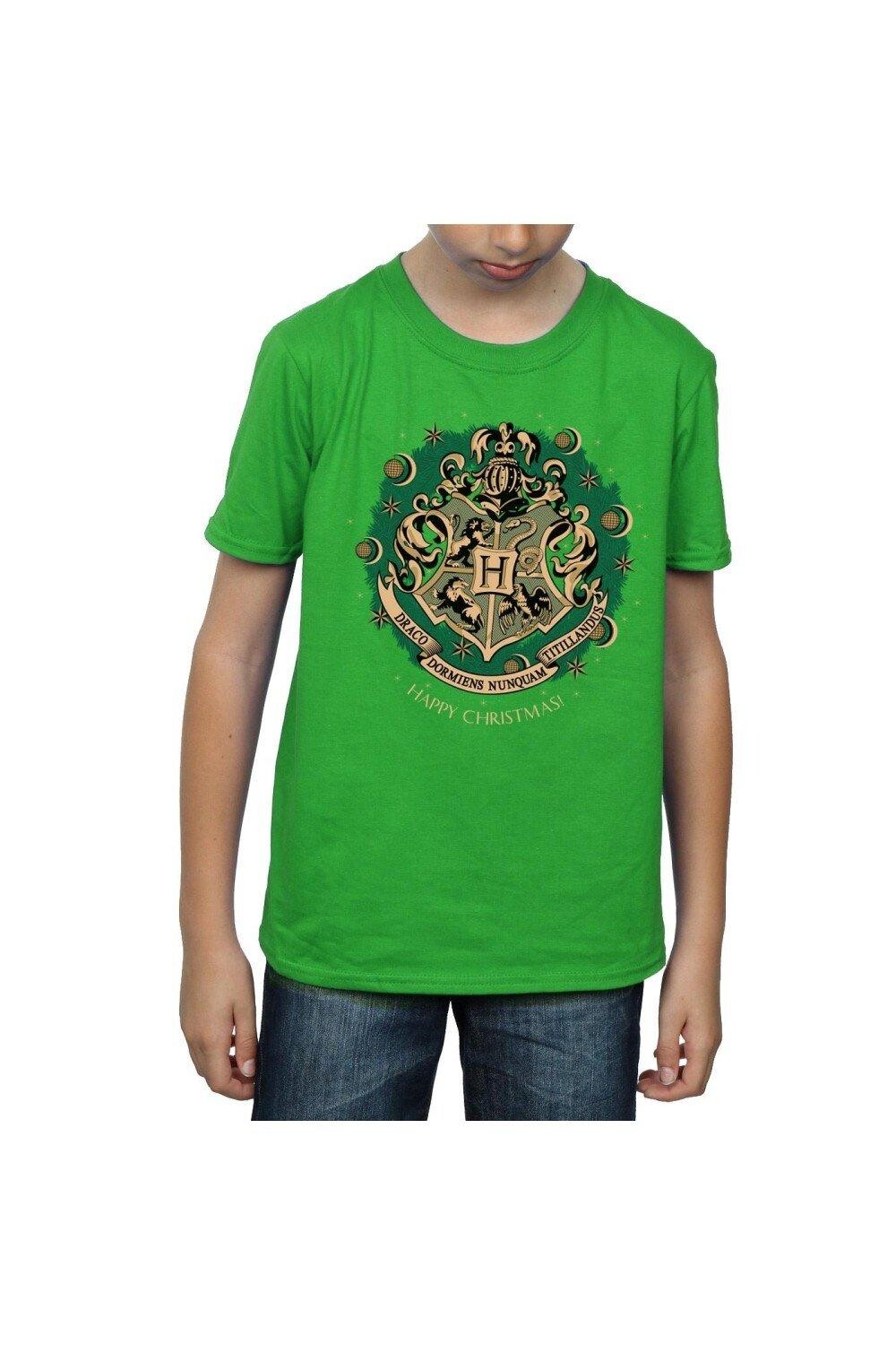 Хлопковая рождественская футболка с венком Harry Potter, зеленый