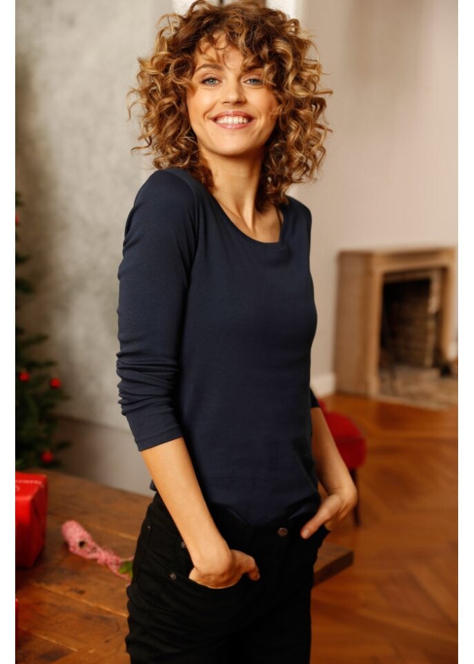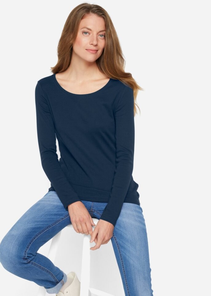 Рубашка простого дизайна с круглым вырезом — идеальная основа для повседневной жизни. Благодаря своему тонкому дизайну рубашка станет идеальным фоном для эффектных аксессуаров или красивого жилета.Рубашка с круглым вырезом и длинными рукавами из bpc, слегка приталенного кроя, естественно подчеркивает фигуру. Изготовлен из чистого хлопка, его удобно носить.Бренд: Bpc Bonprix CollectionЦвет: синий