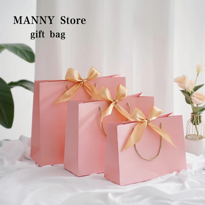 Красивый розовый Подарочный пакет из крафт-бумаги, Золотая Подарочная коробка для пижам, одежды, книг, Упаковочная бумажная коробка с золот...