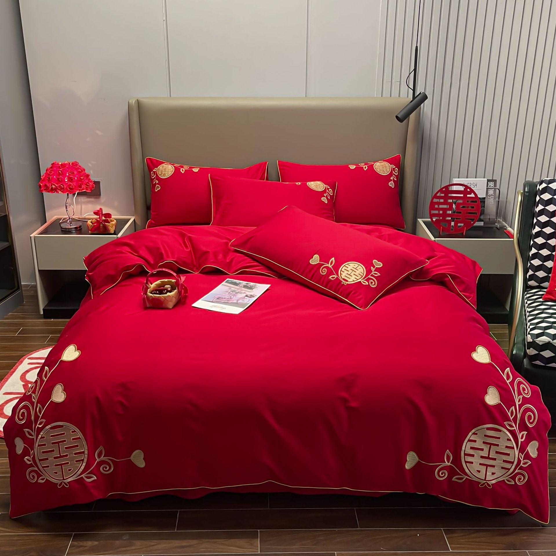 Хлопковая свадебная простыня из четырех предметов, праздничная простыня, пододеяльник из чистого хлопка, свадебная простыня, новая свадебная красная свадебная комната, постельное белье 1.8m bed sheet 4pcs