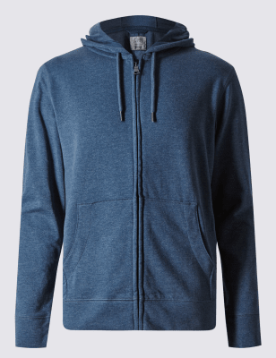 Хлопковая толстовка приталенного кроя на молнии с капюшоном