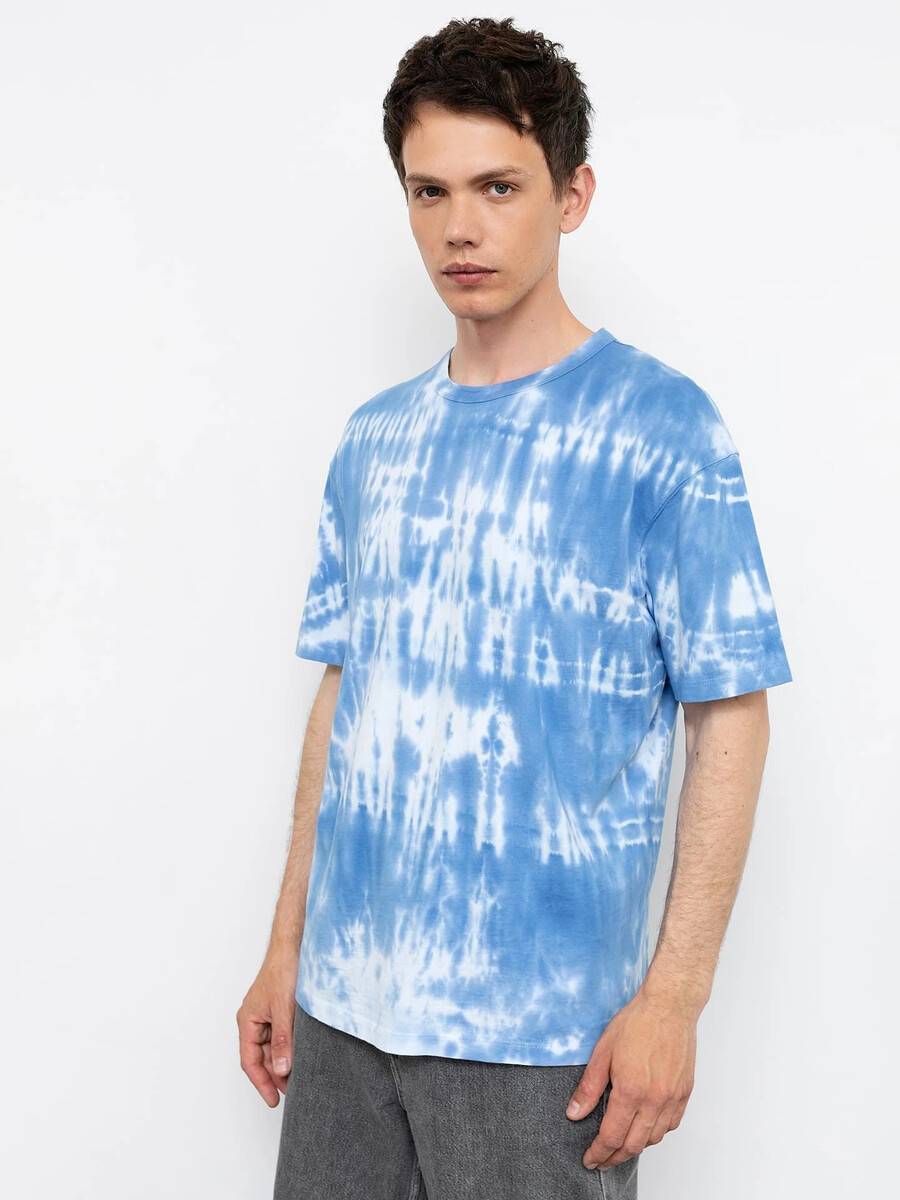 Хлопковая футболка в технике фаст-дай, Голубой;голубой тай дай
