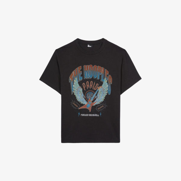 Хлопковая футболка с графичным принтом The Kooples, черный