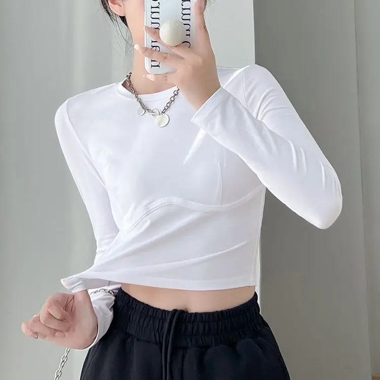 Хлопковая футболка с длинным рукавом, женские футболки, влагоотводящие Базовые Футболки с длинным рукавом, дышащие повседневные топы