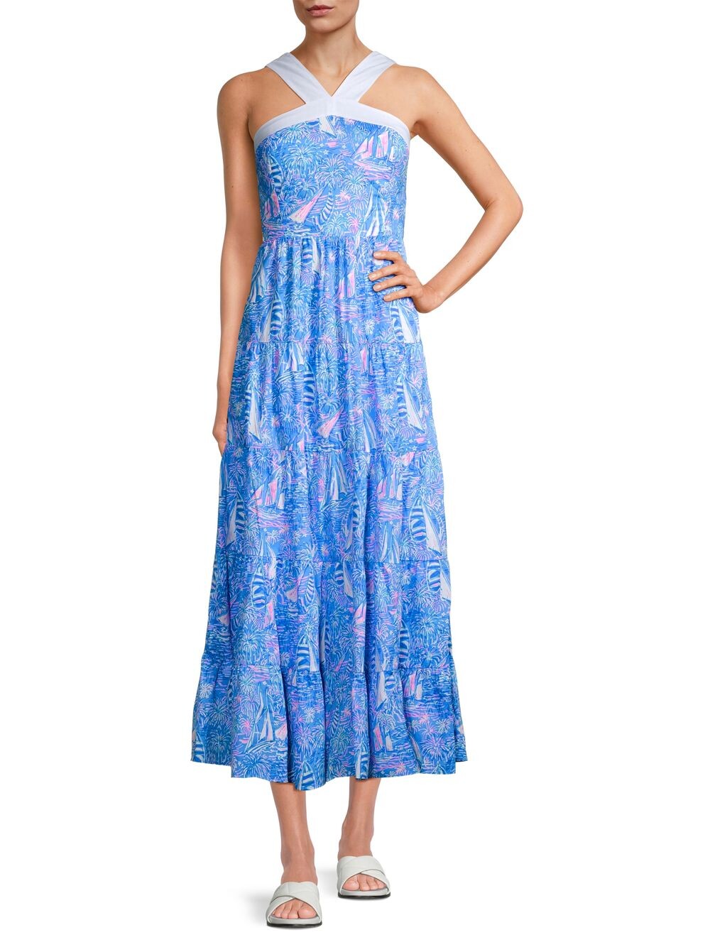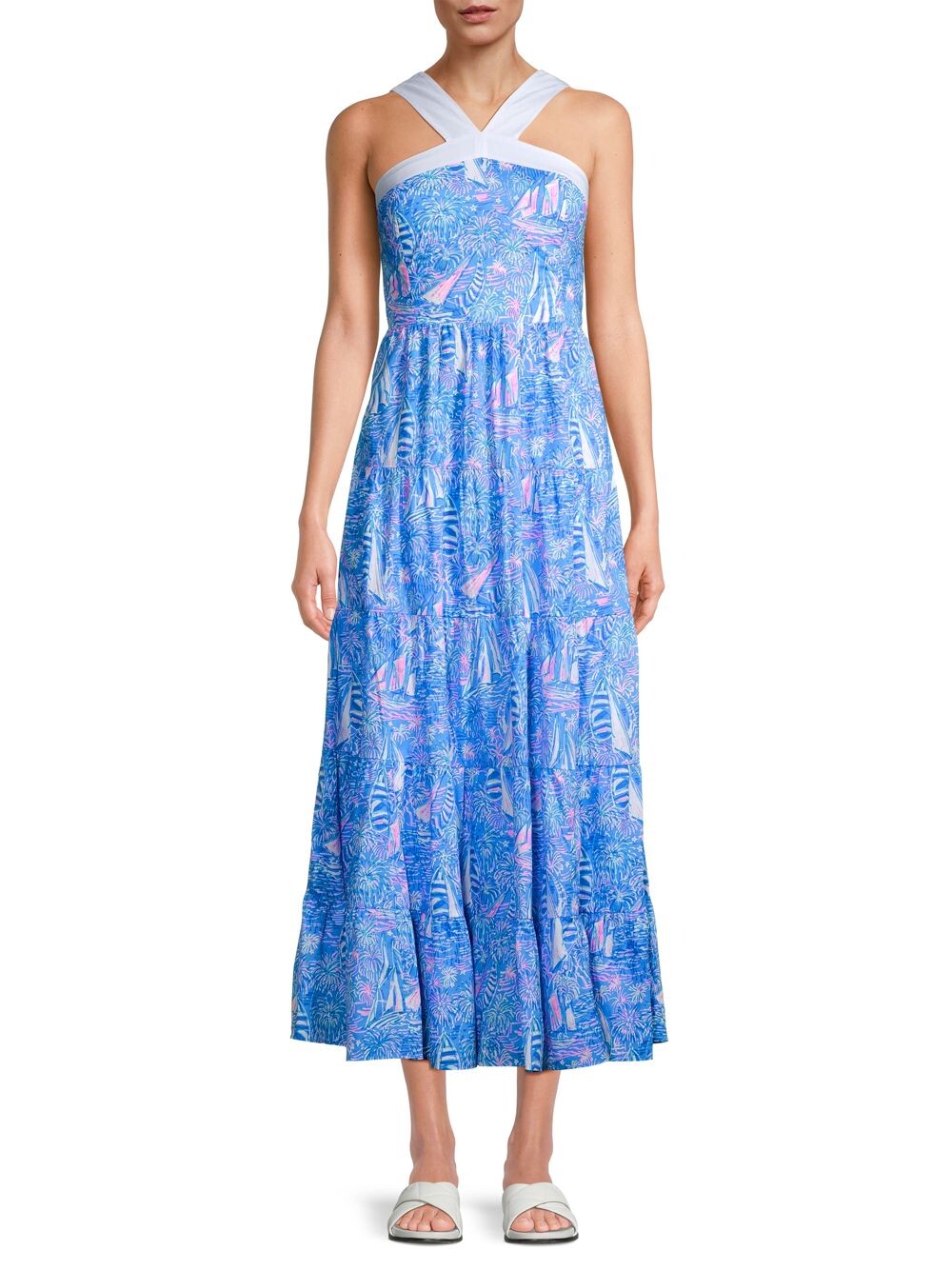 Хлопковое платье миди Jenette с вырезом халтер Lilly Pulitzer, разноцветный