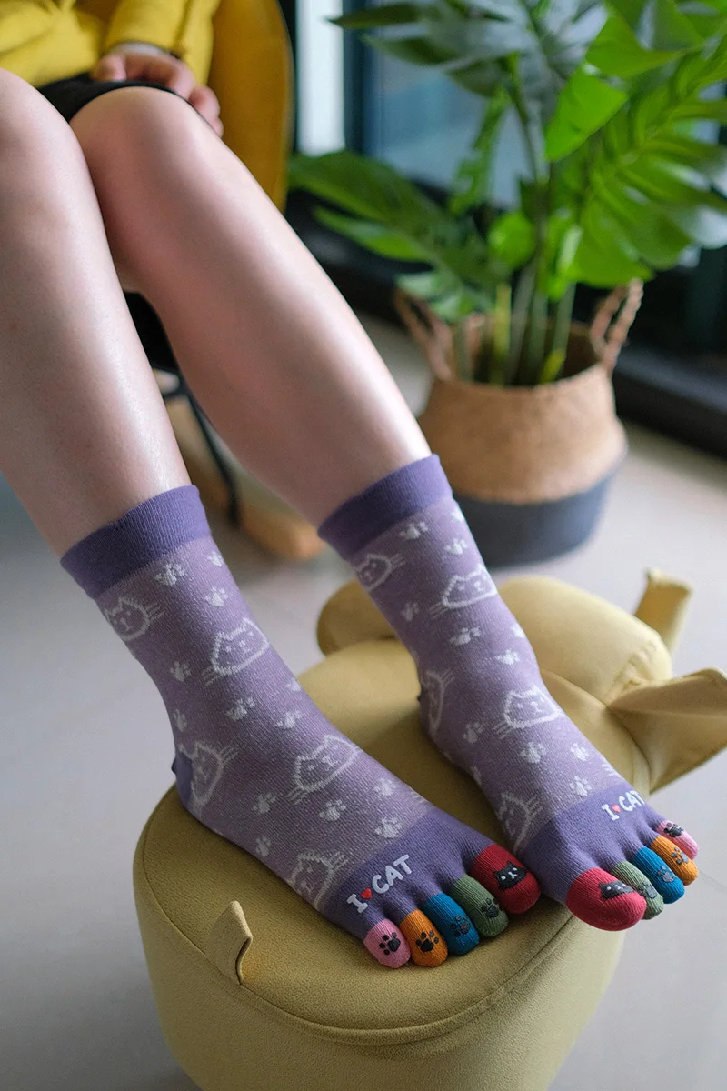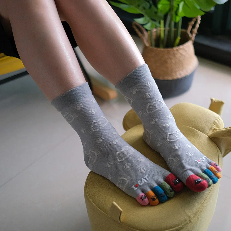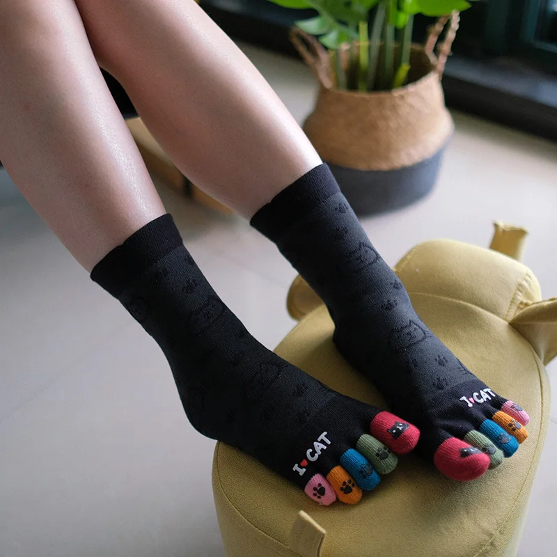 Хлопковые носки с мультяшным принтом и пятью пальцами, Женский комплект милых женских носков