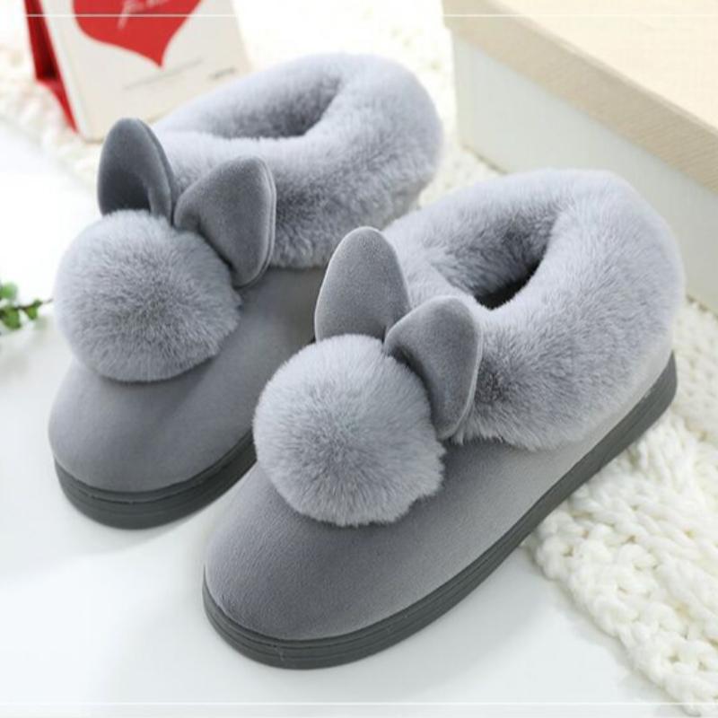 Хлопковые тапочки для дома для женщин, на толстой подошве, теплые, корейская версия, милые напольные тапочки-мешки из искусственного кроличьего меха 40-41 серый