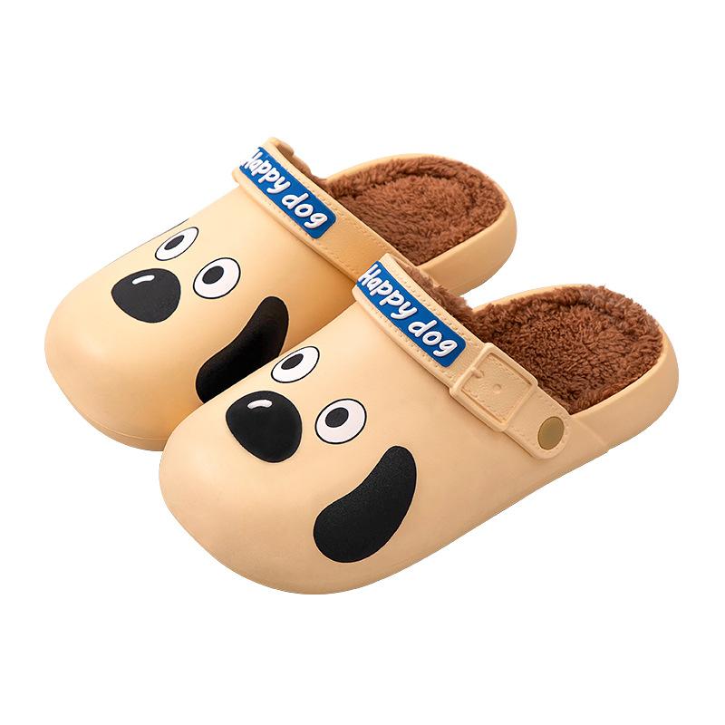 Хлопковые тапочки женские зимние новые плюшевые милые собачки домашние теплые нескользящие для девочек носят хлопковые туфли на улице 40-41 жёлтый