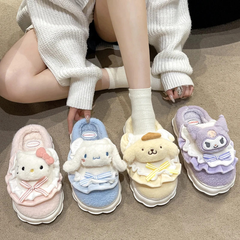 Хлопковые тапочки осень-зима мультфильм My Melody плюшевая толстая подошва Швабра для дома студенческого общежития