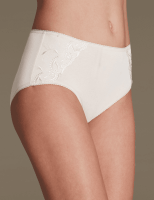 Хлопковые трусики-миди с кружевной отделкой и вышивкой в ассортименте (5 шт), Миндаль