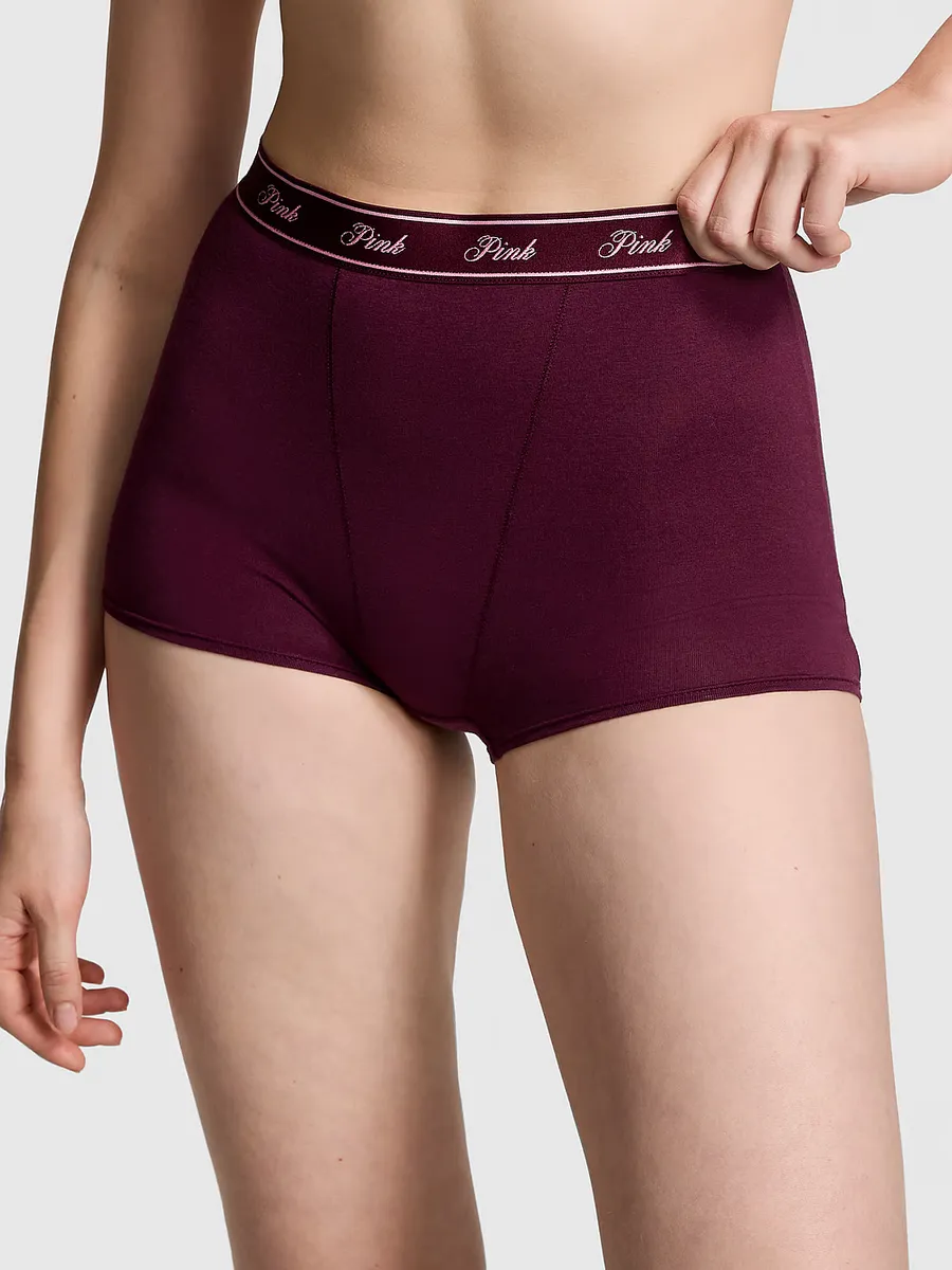 Хлопковые трусики-шортики с высокой талией и логотипом Pink, цвет Wild Rose