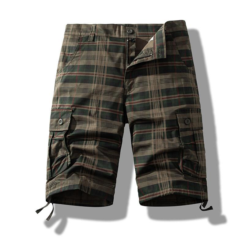 Хлопковые шорты-карго мужские летние спортивные повседневные пляжные шорты с несколькими карманами прямые клетчатые шорты 44 армия зеленый