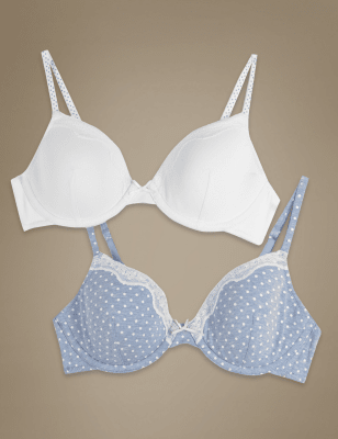Хлопковый бюстгальтер без косточек с моделирующими чашечками с кружевной отделкой (2 шт)