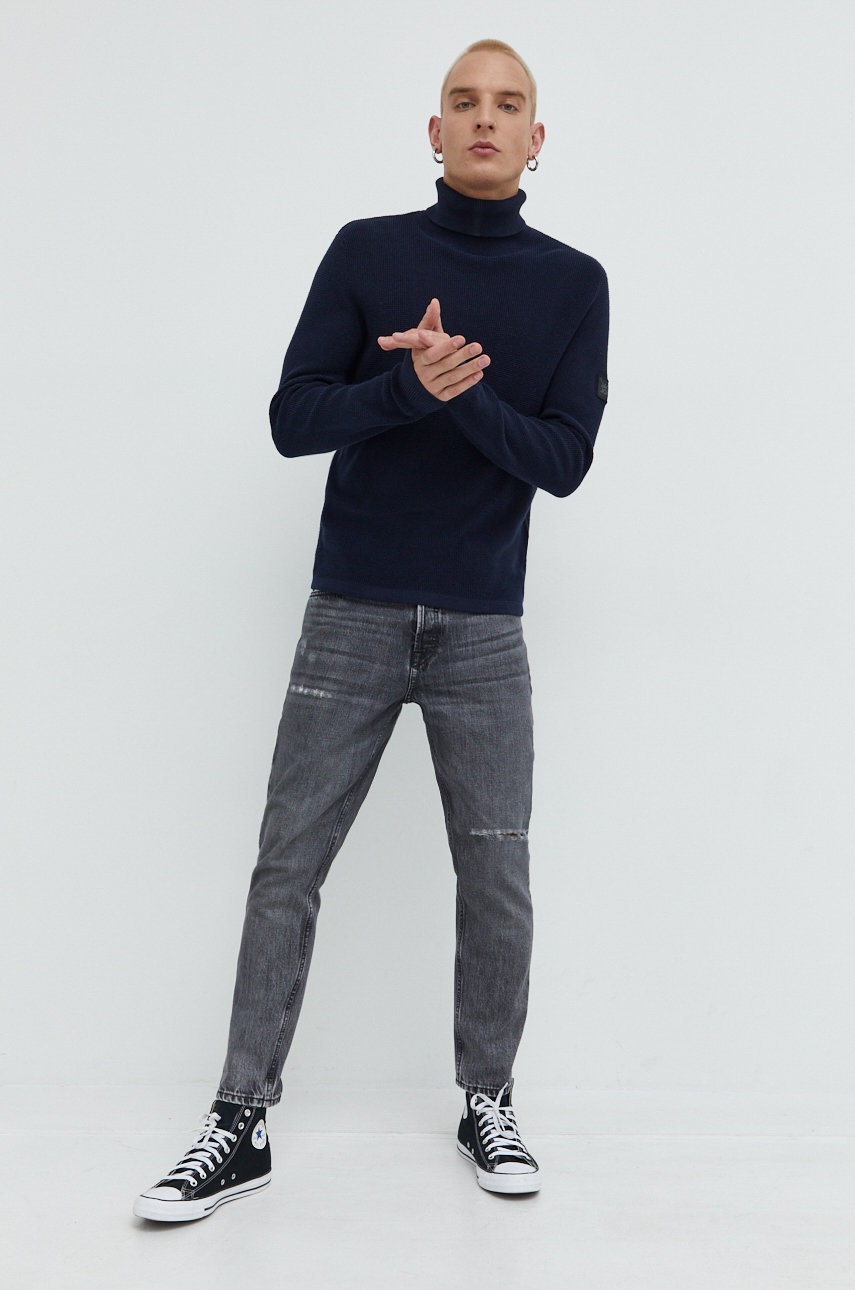 Хлопковый свитер Jack & Jones Jcoclassic мужской цвет синий лёгкий с гольфом