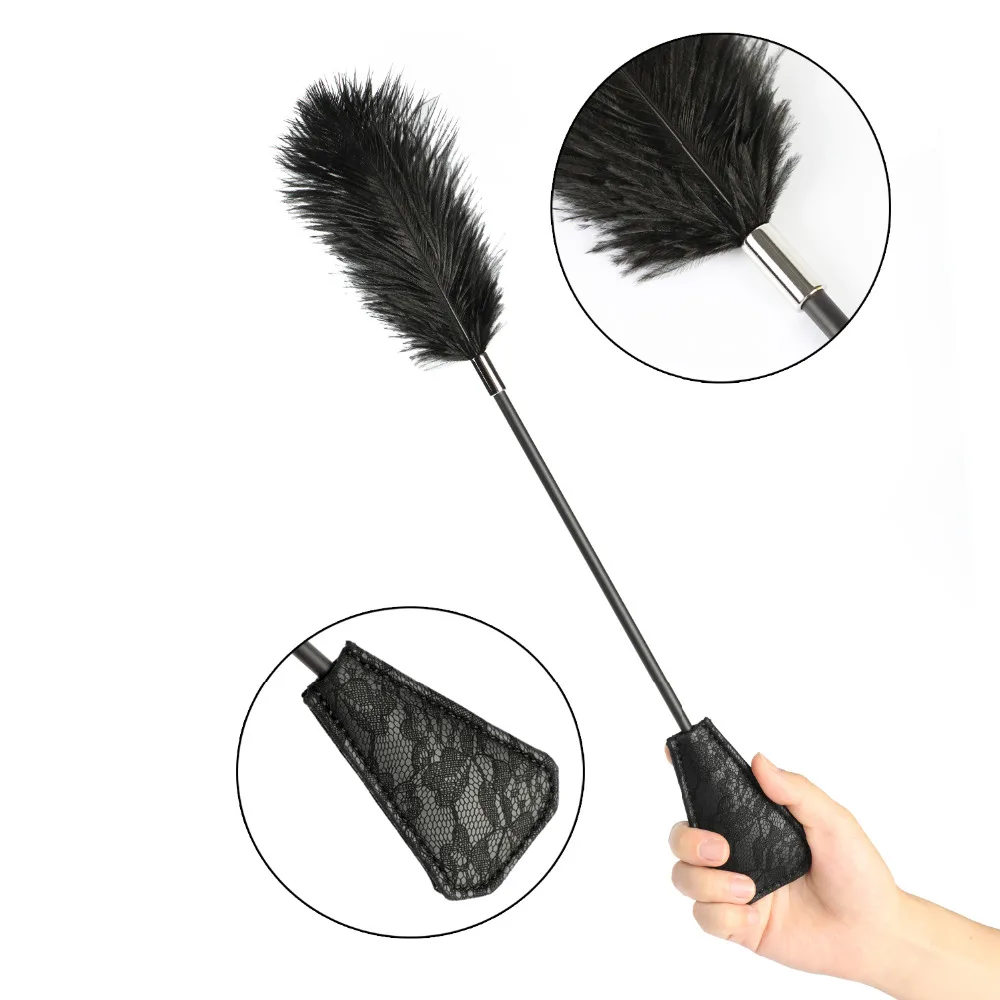 Хлыст для сексуальных игр Флирт игрушки черный хлыст с перьями для женщин мужчин Взрослый игровой флоггер интимные изделия Фетиш раб спанк...