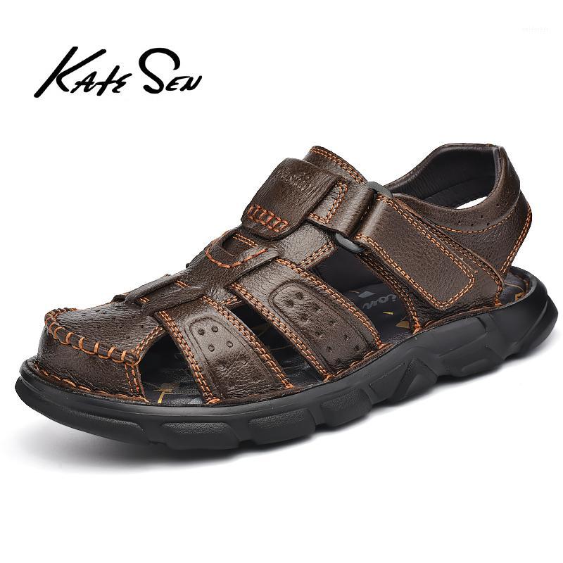 2020 New Summer Flip Flop Men Breathable High Quality Leather Sandals Man Flats Fashion Casual Beach Men's shoes Plus Size 38-481, Black sandals