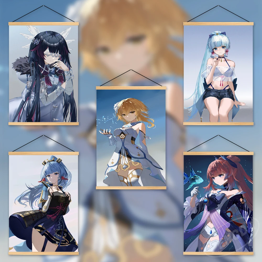 Холст для комнат аниме Декор для дома Genshin Impact настенное искусство Sangonomiya Kokomi принты деревянные подвесные картины плакат модульные картины