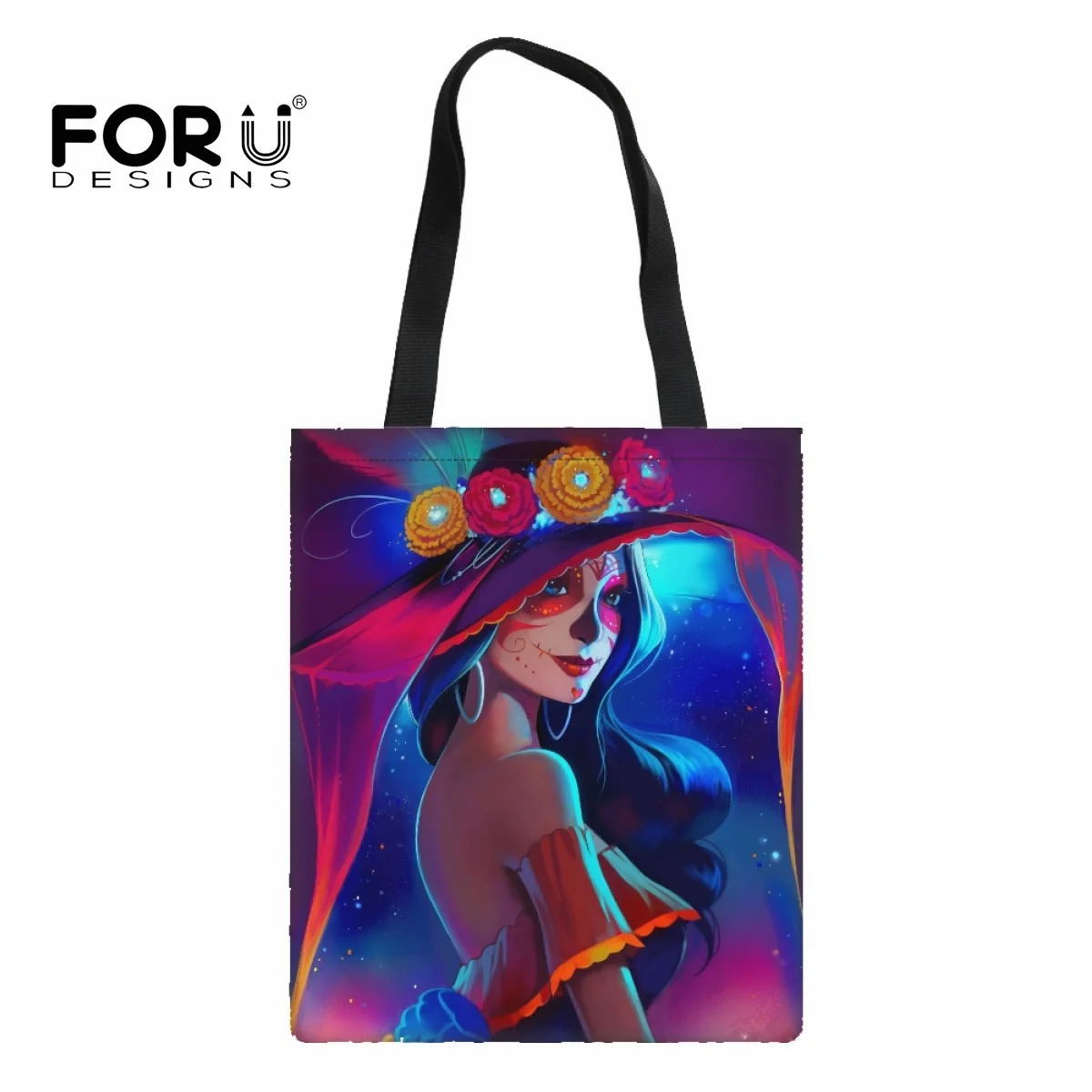 Холщовая Сумка-тоут FORUDESIGNS, страшная дизайнерская сумка-шоппер для девушек, женская сумка для покупок, сумка-шоппер, Женская эко-сумка через плечо
