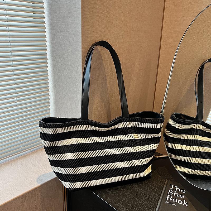Холщовая сумка женская большая вместимость 2024 новая повседневная полосатая сумка через плечо универсальная классная сумка-тоут для поездок на работу чёрный