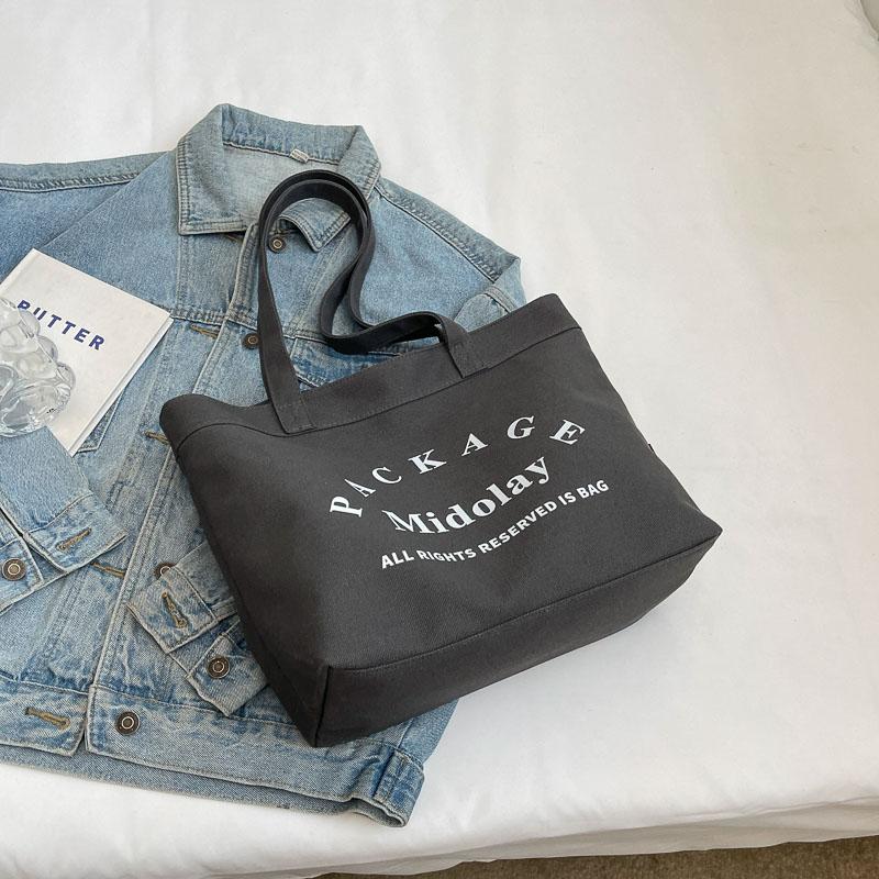 Холщовая сумка женская большая вместительная сумка через плечо с буквенным принтом студенческая большая сумка серый