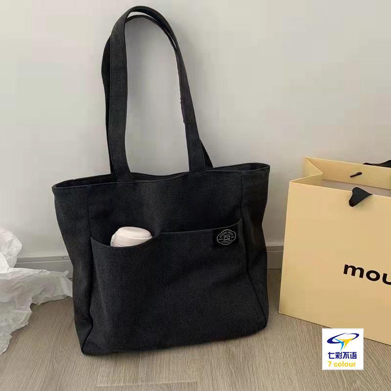 Холщовая сумка женская серия «Лес» новая одноплечевая ручная универсальная школьная сумка для покупок большой вместимости для репетиторства Shoulder Double Pocket Black
