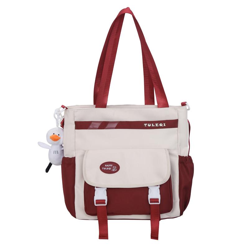 Холщовая сумка через плечо большой емкости, водонепроницаемая нейлоновая школьная сумка для студенток, сумка-тоут на одно плечо красный