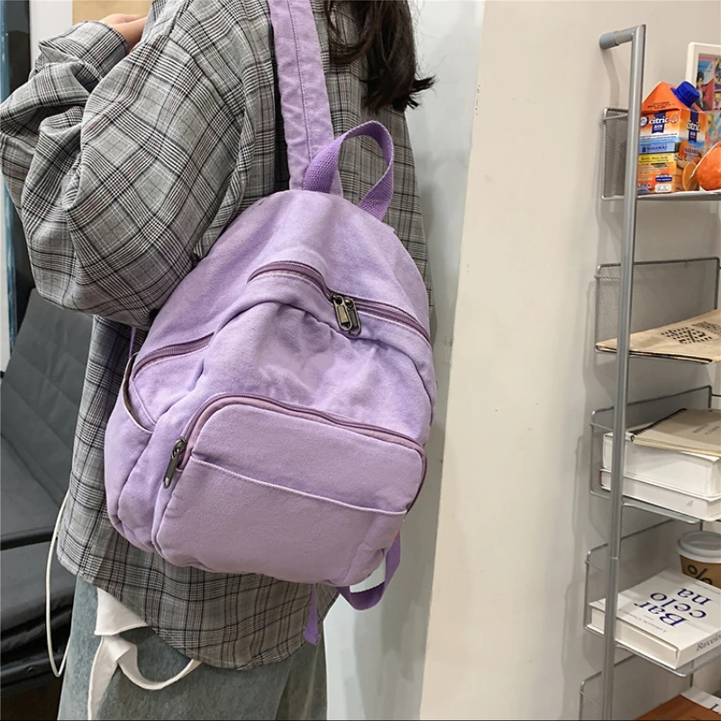 Холщовый женский маленький рюкзак, винтажный женский школьный мини-рюкзак, Женский однотонный рюкзак на молнии