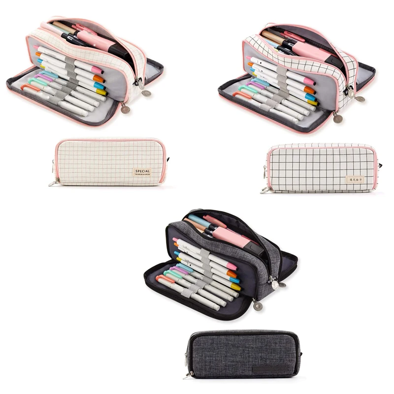 Холщовый чехол для карандашей большой вместимости с 3 отделениями ANGOO для студентов
