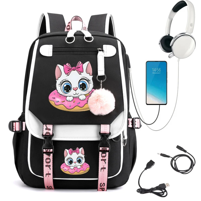 Холщовый школьный ранец для девочек-подростков с Usb-зарядкой