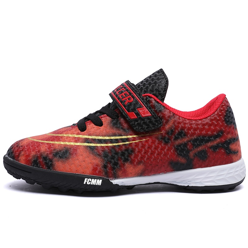 Футбольные бутсы детские, нескользящие, износостойкие, легкие, с амортизацией и низким верхом FCMM, черный/розовый/красный