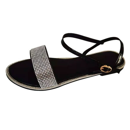 Womens Sandals Women S Summer Flat Round Toe Sandals Outdoor Casual Crystal Buckle Strap Shoes Women S Sandals Pu Black 40