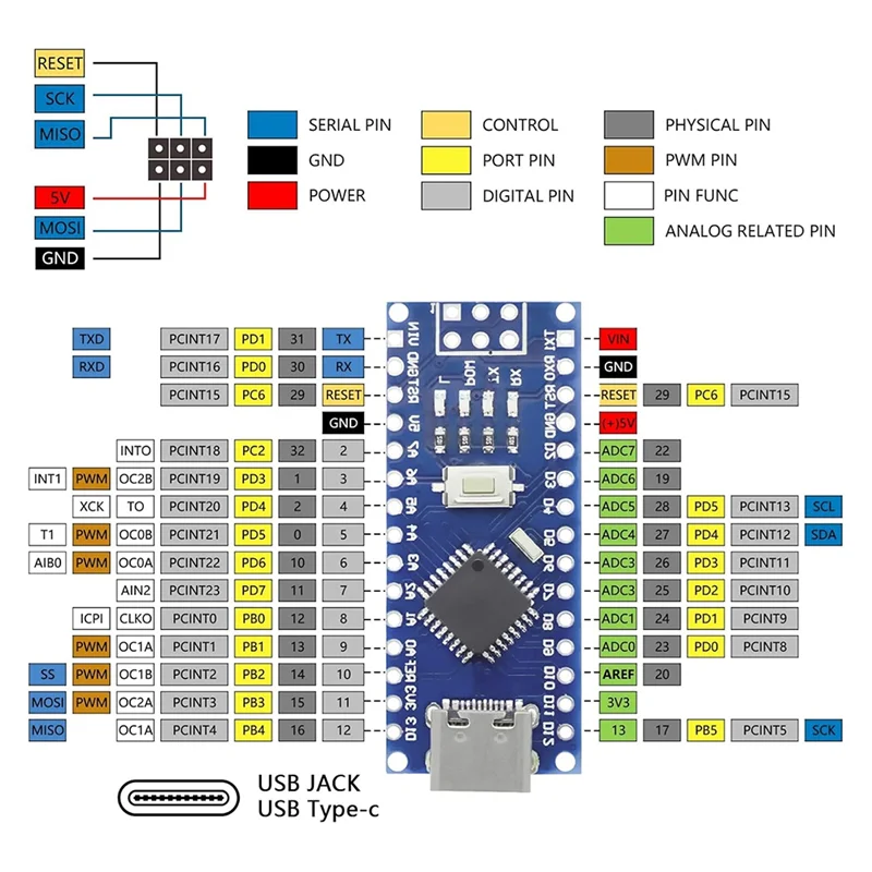 Хорошо сделано для нано-модуля с микрочипом CH340, нано-плата 5 В/16 МГц с Arduino IDE (портом типа C) ATMEGA328P