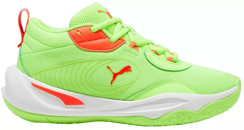 Детские баскетбольные кроссовки PUMA Playmaker Pro для начальной школы, зеленый/оранжевый