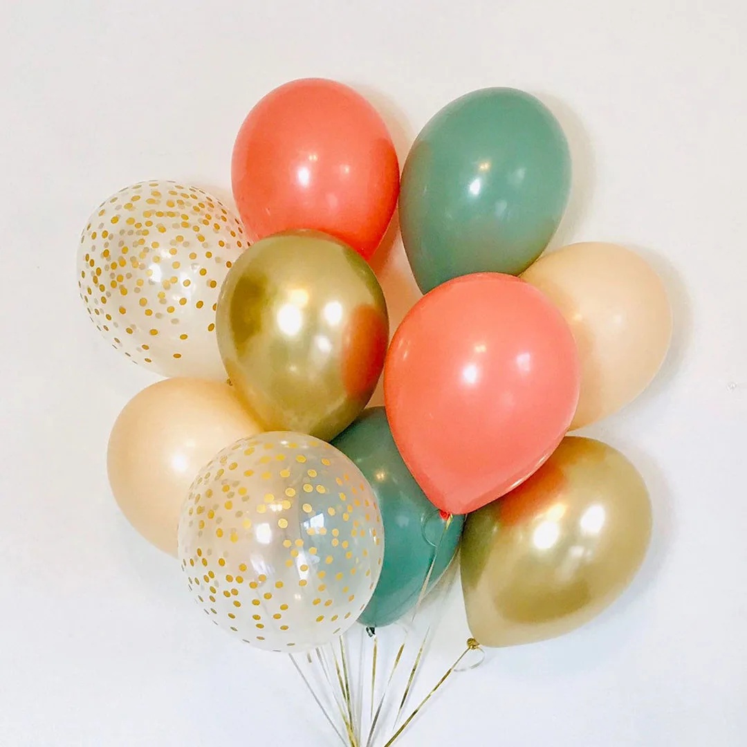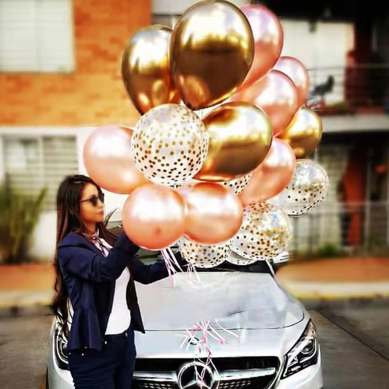 Хром, золотые латексные воздушные шары в горошек, 15 шт.