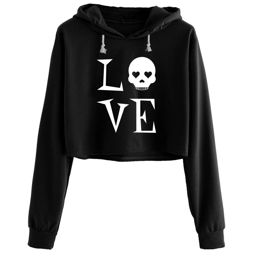 Худи женское в стиле Харадзюку, укороченный пуловер с надписью Love Skull, в готическом стиле, на Хэллоуин