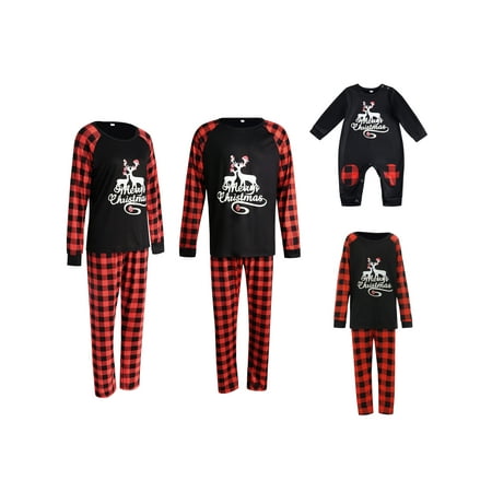 Merry Christmas Pajamas for Family Jammies for Adults Kids Holiday Plaid Red Loungewear Sleepwear