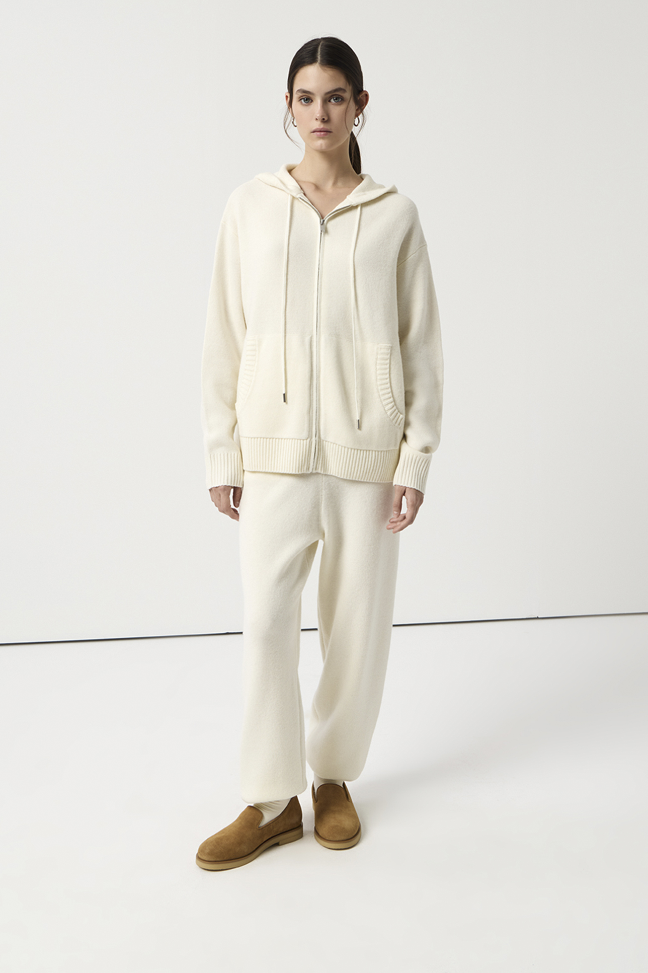 Вязаное объемное худи с капюшоном и удобными большими карманами. Застегивается на молнию. Сочетание шерсти и кашемира делает модель очень мягкой и теплой. Плотность и состав ткани позволяют носить худи как в холодное время года, так и в межсезонье. Сочетайте худи с брюками того же цвета или носите как самостоятельный элемент базового гардероба.