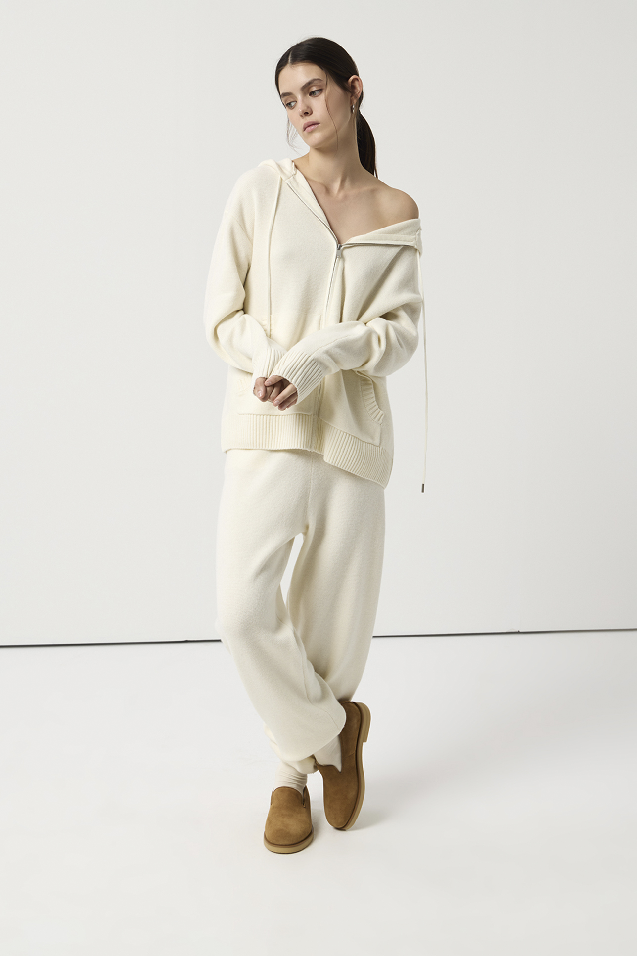 Худи на молнии с кашемиром молочного цвета, XS