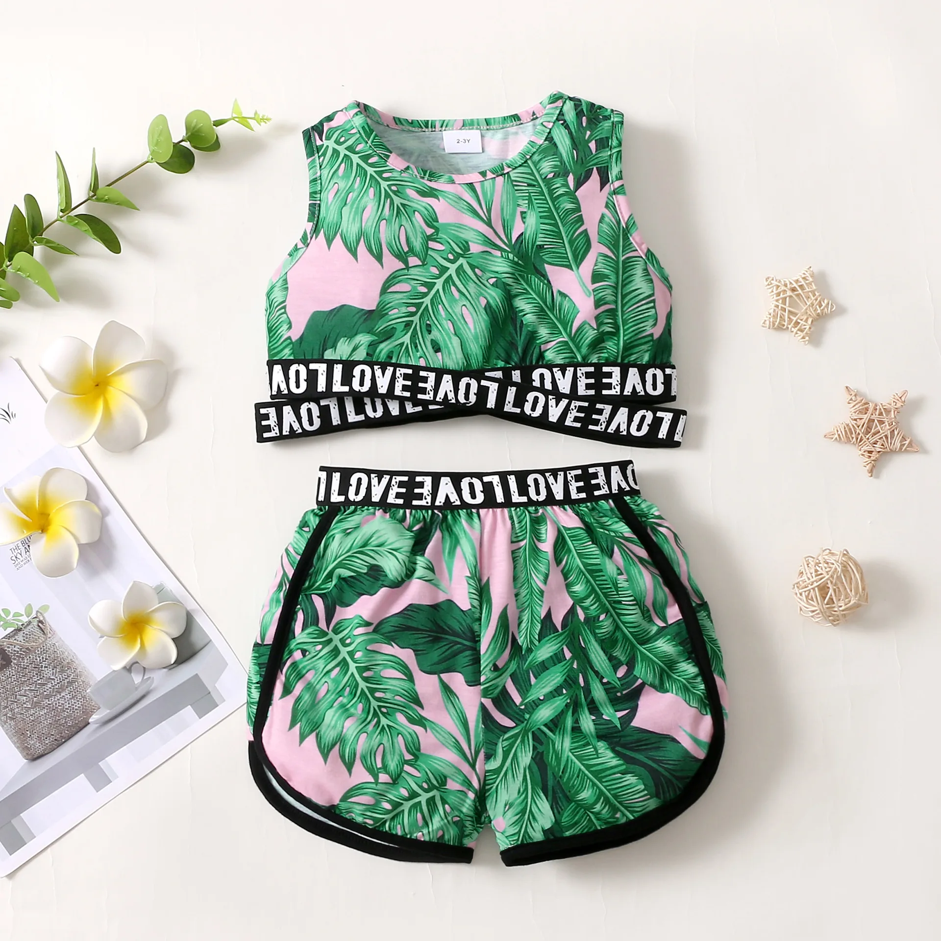 Комплект одежды для маленьких девочек, топ без рукавов с цветочным рисунком и однотонные шорты с надписью, Модный комплект из 2 предметов, дл...
