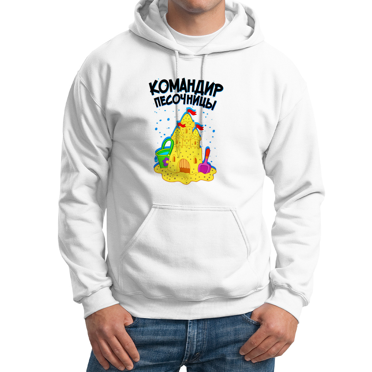 Худи унисекс CoolPodarok Прикол Дети Командир песочницы белое 50 RU, Белый, 0M015553