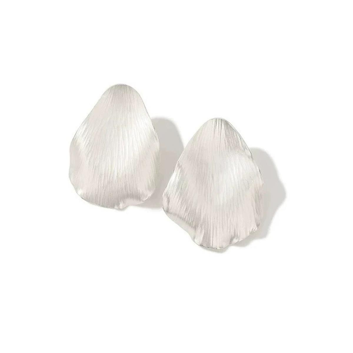 Художественное чувство Матовый Серебряный Лепесток Натуральная Текстура Серьги-гвоздики Легкая Роскошь Нерегулярный Дизайн Преувеличенные Серьги 483