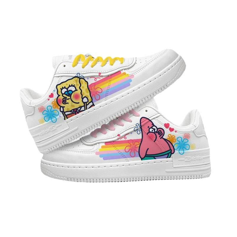 Кроссовки Губка Боб мультфильм периферийная повседневная обувь милая маленькая белая обувь для девочек обувь для скейтборда Студенческая спортивная обувь для отдыха подарок