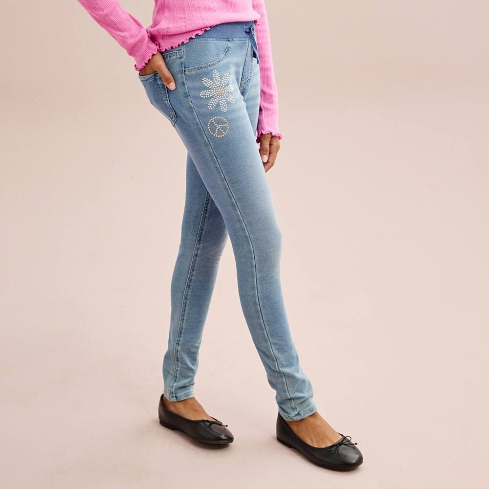 Джеггинсы SO в рубчик на талии для девочек 6–18 лет стандартного и большого размера, цвет Medium Wash Floral