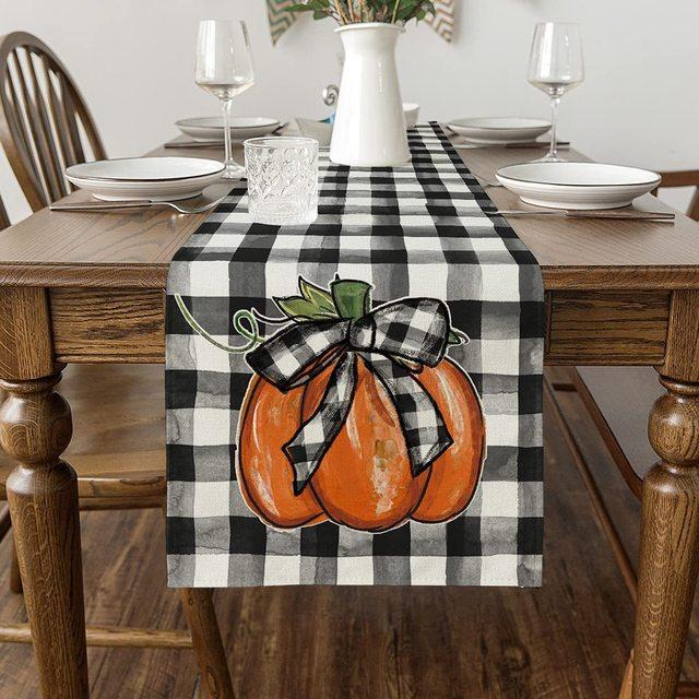 Хэллоуин Льняная скатерть Тыква Оранжевая скатерть Скатерть Столовая вечеринка Праздничное украшение Осенний фестиваль 150x33cm